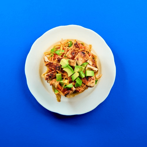 Marinated chicken breast, lettuce, tomato, carrots, cheese, and crispy tortilla bowl