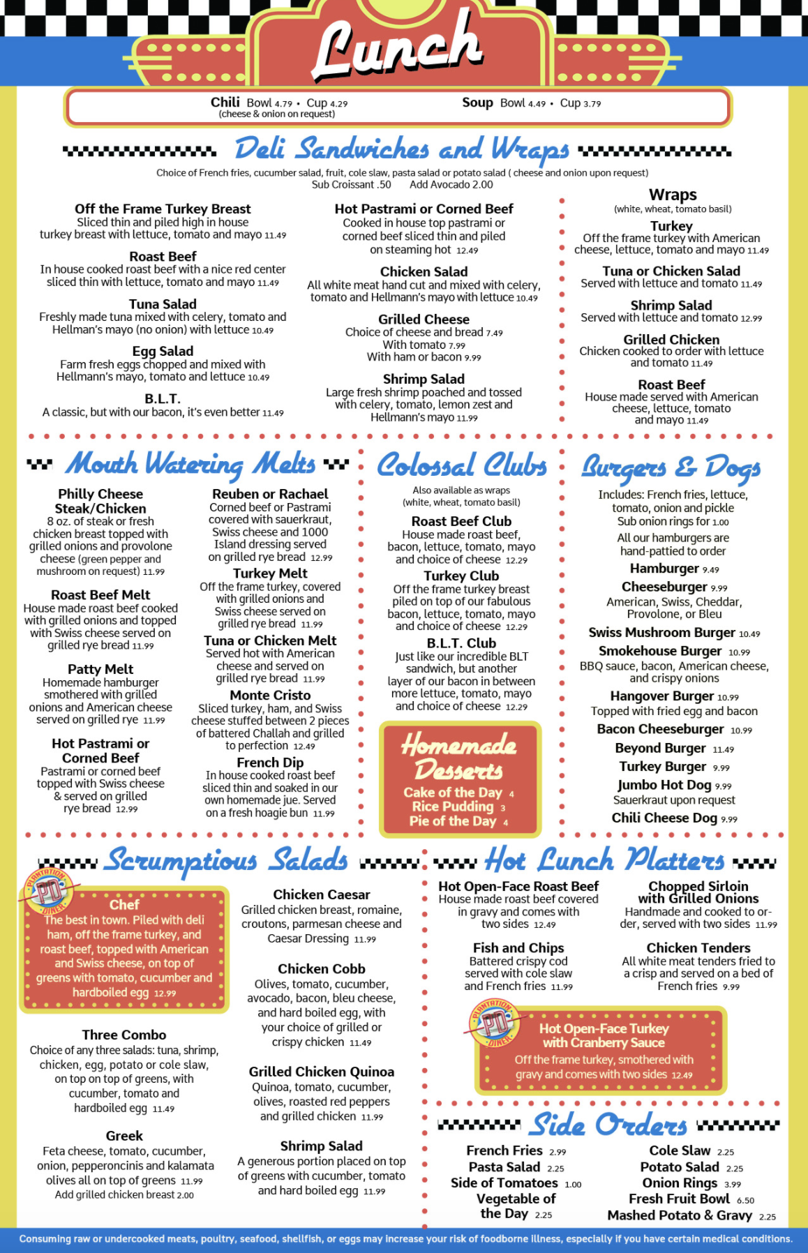 Keywords American food, American diner, breakfast diner, lunch diner, catering, breakfast foods, lunch foods, sandwiches, pick-up, eggs, bacon, sausage, ham steak,, corned beef hash, chopped steak, N.Y. strip steak,, low carb options, home fries, hash browns, grits, oatmeal, fresh vegetables, bagels, toast, biscuits, Englishmuffins, lox platter,, biscuits with homemade gravy, Frenchtoast, pancakes,, muffins, croissants, fresh fruit, cold cereal, omelets, challah Frenchtoast, raisin bread Frenchtoast,, chocolate chip pancakes,banana pancakes, blueberry pancakes, Belgian waffles,fried egg sandwich,biscuit sandwich, breakfast wrap,croissant sandwich,hamburgers,, cheeseburgers,hotdogs, eggsbenedict,, eggs Florentine,eggs Neptunewith lox,.